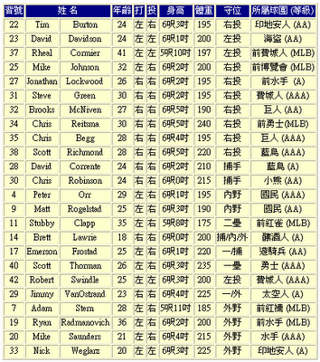 以上教練4名,投手10名、捕手3名、內野手6名、外野手5名,球員共24名。